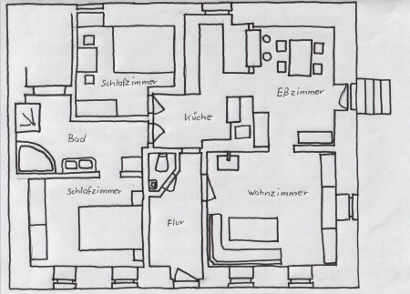 Het appartement bevindt zich op de begane grond en een trap naar de terras op het zuiden te bereiken met de volgende gazon.